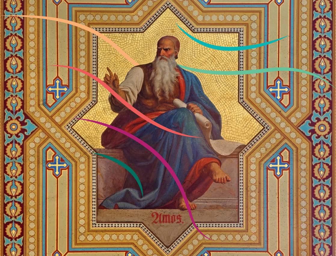 Ветхозаветный пророк, принадлежащий к числу двенадцати так называемых «малых». Амос первый по времени из известных нам пророков-писателей. Стиль его книги свидетельствует о цельности его характера и, несмотря на простое происхождение, начитанности и широкой эрудиции. В своей проповеди Амос выступал в защиту строгого монотеизма, против распространения идолопоклонства. Он обличал недостатки современного ему общества, особенно социальную несправедливость и неравенство, призывал к милосердию в отношении бедных и униженных. Амос утверждал, что человечность и правда являются формами служения Богу более важными, чем формальное принесение жертв. В его книге мы впервые встречаем идею равенства всех народов; избранничество Израиля он понимал как высокую меру ответственности перед Богом. В его писаниях впервые возникает образ «Дня Ягве» — Суда Господня, и выражается вера в спасение «остатка верных». Амос оказал большое влияние на последующих пророков, особенно Исайю и Михея. В новозаветных Деяниях Апостольских первомученик Стефан цитирует его в речи против законников.