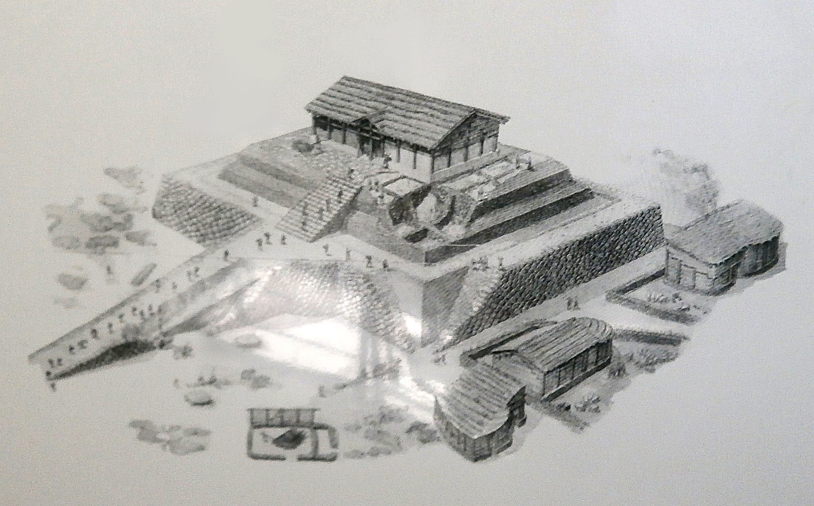Позднее люди, также принадлежавшие к культуре Оциери, соорудили широкую приподнятую платформу в виде усечённой пирамиды 27×27 м высотой около 5,5 м. На платформе была сооружена прямоугольная площадка, ориентированная на юг, размером 12,50 м на 7,20 м, известная как «красный храм», где все поверхности были окрашены охрой; сохранились также следы жёлтой и чёрной краски.