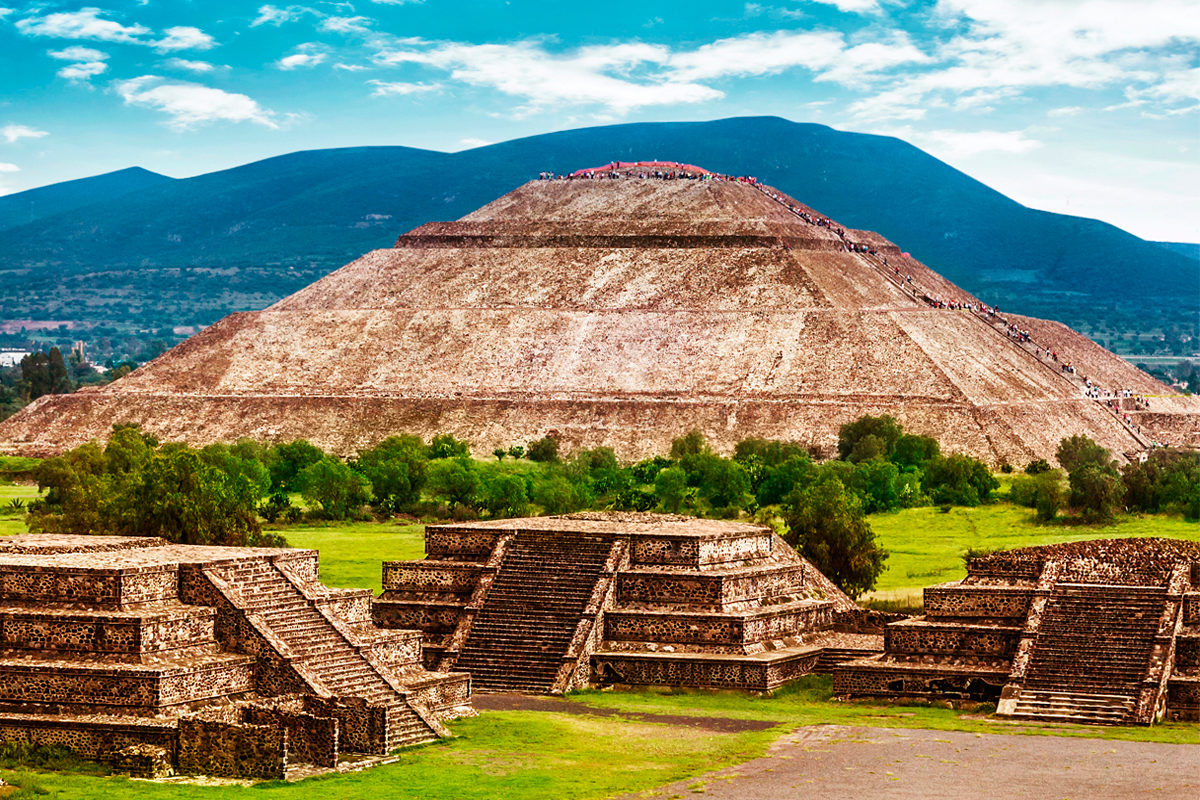 Крупнейшая постройка города Теотиуакан и одна из самых крупных в Мезоамерике. Она располагается на Тропе Мёртвых между пирамидой Луны и Цитаделью в тени массивной горы Серро-Гордо и является частью большого храмового комплекса. Пирамида находится в 40 км от столицы Мексики — Мехико, в северо-восточном направлении. Высота пирамиды 64,01 метра (200 футов). Название «Пирамида Солнца» придумали ацтеки, посетившие заброшенный к тому моменту Теотиуакан в XIII веке. Они полагали, что в этом месте однажды собрались боги, чтобы насытить Космос новыми силами. Город связан с космологическим мифом о сотворении светил — Солнца и Луны. Бернардино де Саагун писал во «Всеобщей истории событий Новой Испании», что в этом месте боги решали, кто из них будет освещать мир: «Говорят, что до того, как в мире появился день, собрались боги в некоем месте, называемом Теотиоакан [Teutioacan], которое [сегодня] является селением Сан-Хуан между Чиконаутланом [Chicunauhtlan] и Отомбой [Otumba]». В связи с мифологическими представлениями и берёт своё название Теотиуакан — «место, где люди стали богами». Также возможны другие переводы: «место, где рождаются боги», «место апофеоза», «обитель богов». Как называли город и пирамиду сами теотиуаканцы, неизвестно. Вместе с тем, названия пирамиды Солнца и расположенной рядом Луны возможно отражают историко-мифологическое значение, придававшееся их строителями. Такой точки зрения придерживался исследователь Майкл Ко, писавший по этому поводу, что вероятно они дошли в современную эпоху из легенд и отражают их посвящение богам Солнца и Луны. Кроме того, это не противоречит астрономической ориентации сооружений.