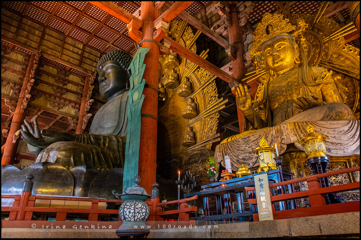 Тодай-дзи (яп. 東大寺 то:дай дзи) — древний буддийский храм в японском городе Нара. Храм охраняется как объект Всемирного наследия ЮНЕСКО. Храм представляет собой центр традиции кэгон. Храм Тодай-дзи считается самым большим деревянным сооружением в мире. В нём находится гигантская бронзовая статуя Будды Вайрочаны — Большой будда Тодай-дзи. Храмовая территория представляет собой олений парк, где свободно гуляют священные японские олени (пятнистый олень, или олень-цветок, лат. Cervus nippon), которых подкармливают туристы. На территории храмового комплекса имеется большое количество уникальных сооружений, в частности февральский павильон Нигацу-до, мартовский павильон Сангацу-до и другие пагоды и храмы. Во время Тэмпё на Японию свалились бедствия и эпидемии. В 743 году император Сёму издал указ, по которому жители должны построить статую Будды для своей защиты. В строительстве приняло участие 2 180 000 человек. Проект создал Кунинака-но-Мурадзи Кимимаро. Он же руководил сборкой статуи размером 15 метров, отлитой по частям. Храм был завершён в 745, а Будда закончен в 751 году, при этом для создания статуи была использована почти вся производимая в стране бронза. В 752 году проводится церемония освящения статуи, в которой принимают участие монахи со всей Японии и индийский буддийский монах Бодхисена. Статую ремонтировали несколько раз, в частности после землетрясения и двух пожаров. Храм приобрёл современный вид в 1709 году, при этом были демонтированы две разрушенные землетрясением пагоды высотой 100 м, вероятно, самые высокие деревянные строения в мире того времени. Тодай-дзи считался главным храмом области Ямато. В сокровищнице храма Сёсоин находится немало реликвий времён постройки храма. Также в храме хранится обширная коллекция рукописей.
