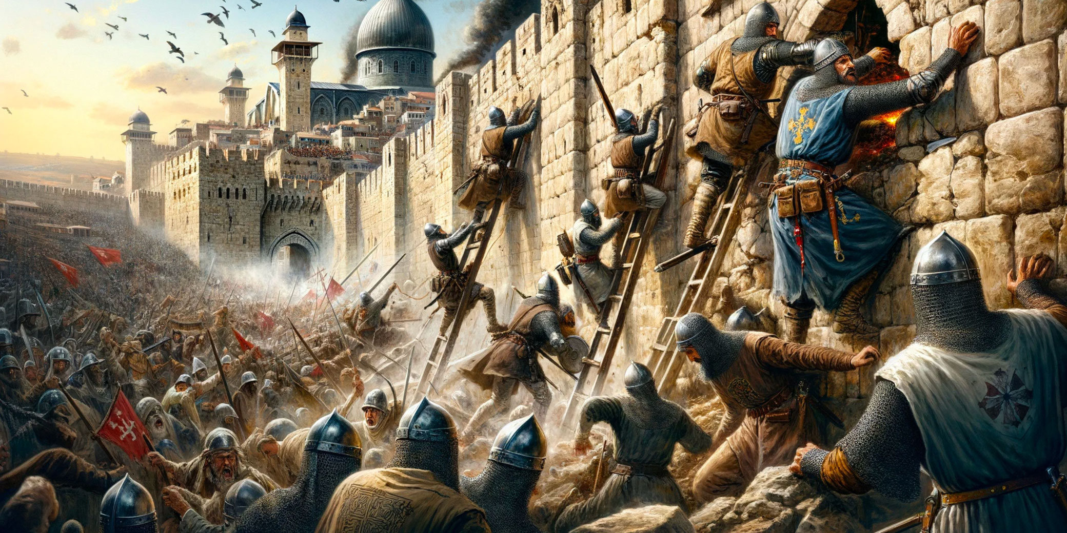 Осада Иерусалима — одно из ключевых событий Первого крестового похода. Происходила с 7 июня по 15 июля 1099 года, в результате город был захвачен войсками крестоносцев. Успешный исход осады привёл к завершению Первого крестового похода и созданию в Малой Азии государств крестоносцев. Взятие Иерусалима 15 июля 1099 года отмечено во всех исторических источниках начала XII века, в том числе и в русской «Повести временных лет». После падения города правителем новообразованного Иерусалимского королевства стал Готфрид Бульонский. Готфрид не захотел называться королём в городе, где Христос был коронован терновым венцом, поэтому 22 июля 1099 года принял титул Защитника Гроба Господня (лат. Advocatus Sancti Sepulchri). 1 августа был избран первый латинский патриарх Иерусалима. Им стал Арнульф Шокесский, капеллан Роберта Нормандского. 5 августа, допросив нескольких чудом уцелевших горожан, Арнульф узнал местонахождение священной реликвии — Животворящего Креста, на котором распяли Иисуса, что вызвало новый религиозный подъём. В начале августа Готфрид возглавил поход против приближающейся египетской армии ал-Афдала и 12 августа разбил мусульман при Аскалоне. После этой победы угроза Иерусалиму была ликвидирована и воины Христовы сочли свой долг выполненным, большинство из них вернулось на родину. Первый крестовый поход увенчался успехом, в результате чего на Востоке образовались несколько государств крестоносцев. Эти государства представляли собой плацдарм «Западного мира» во враждебном окружении и требовали постоянной помощи извне, что делало неизбежным последующие крестовые походы. Опустошение целых территорий Ближнего Востока в ходе крестового похода, а в особенности резня устроенная после захвата Иерусалима, обусловила многовековую конфронтацию католического Запада с мусульманским Востоком.