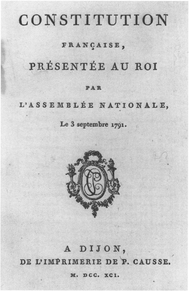 Несмотря на то, что большинство членов было на стороне конституционной монархии, выработанная собранием конституция лишь по форме была монархической, по существу же — республиканской: тогдашние политические теории (Руссо и Мабли), недоверие к королевской власти, неуверенность в окончательном уходе абсолютизма заставляли учредительное собрание всячески урезать полномочия монарха. Большое влияние в этом смысле оказало также бегство короля Людовика XVI, побудив собрание внести в конституцию статьи, в силу которых король в некоторых случаях должен был считаться отказавшимся от престола. 3 сентября 1791 года конституционный акт был предложен королю, который, после долгих колебаний и совещаний, 14 сентября, дал присягу в верности нации и закону. Во главе этой конституции стояла «Декларация прав человека и гражданина». Верховная власть, «единая, нераздельная, неотчуждаемая и неотъемлемая», принадлежит нации: все власти делегируются нацией; представители её — Законодательное собрание (фр. le corps législatif) и король.