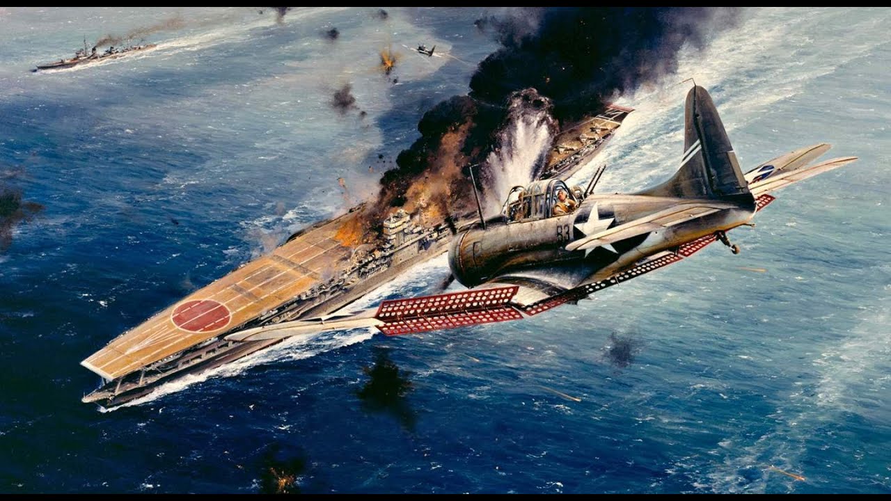 Сражение у атолла Мидуэй, Мидуэйское сражение (англ. Battle of Midway, 4 — 7 июня 1942 года), (яп. ミッドウェー海戦 миддоуэ кайсэн) — крупное морское сражение Второй мировой войны на Тихом океане. Решительная победа флота США над силами японского ВМФ. Стало поворотной точкой в войне на Тихом океане. Японская авианосная группа потеряла 4 тяжёлых авианосца, 256 самолётов (с учётом авиации крейсеров), что лишило японский флот возможности эффективно действовать вне зон прикрытия береговой авиации.